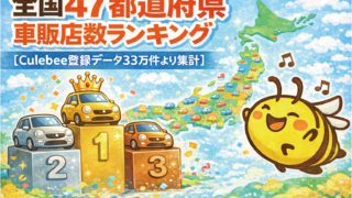 🐝 Culebee 都道府県別 車両販売店数ランキング Culebeeに登録されている車両販売店データを集計した結果、愛知県が全国1位となりました。 本記事ではランキング結果だけでなく、データから見える傾向や業界視点での考察も解説します。 ...