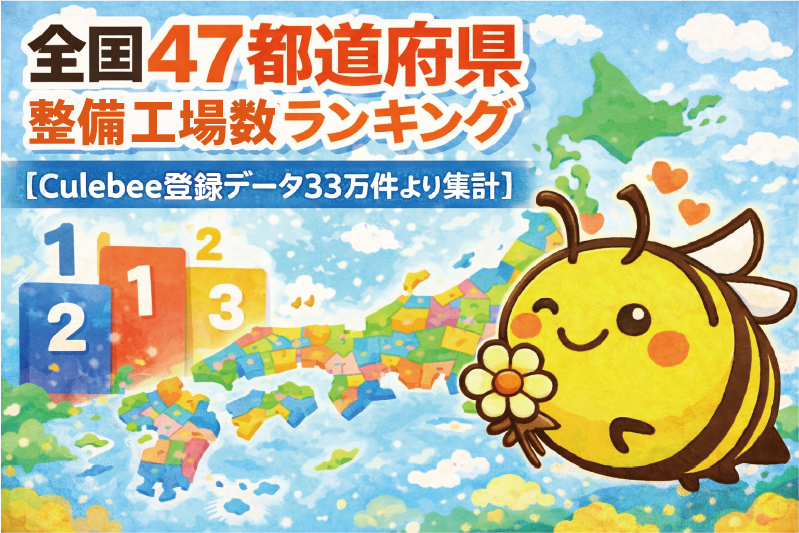 Culebeeに登録されている整備工場データを集計した結果、愛知県が全国1位となりました。